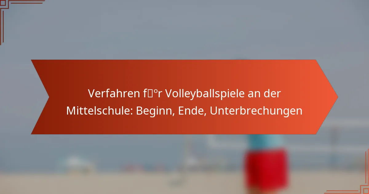 Die Volleyballspiele an der Mittelschule folgen spezifischen Verfahren für den Beginn, das Ende und die Handhabung von Unterbrechungen, um ein reibungsloses und organisiertes Erlebnis für Spieler und Zuschauer zu gewährleisten. Die Startverfahren umfassen Rituale vor dem Spiel, Aufwärmübungen und einen Münzwurf, während die Spiele mit offiziellen Signalen und Ritualen nach dem Spiel enden. Darüber hinaus sind klare Protokolle vorhanden, um Unterbrechungen zu handhaben, die die Sicherheit der Spieler gewährleisten und die Integrität des Spiels aufrechterhalten.